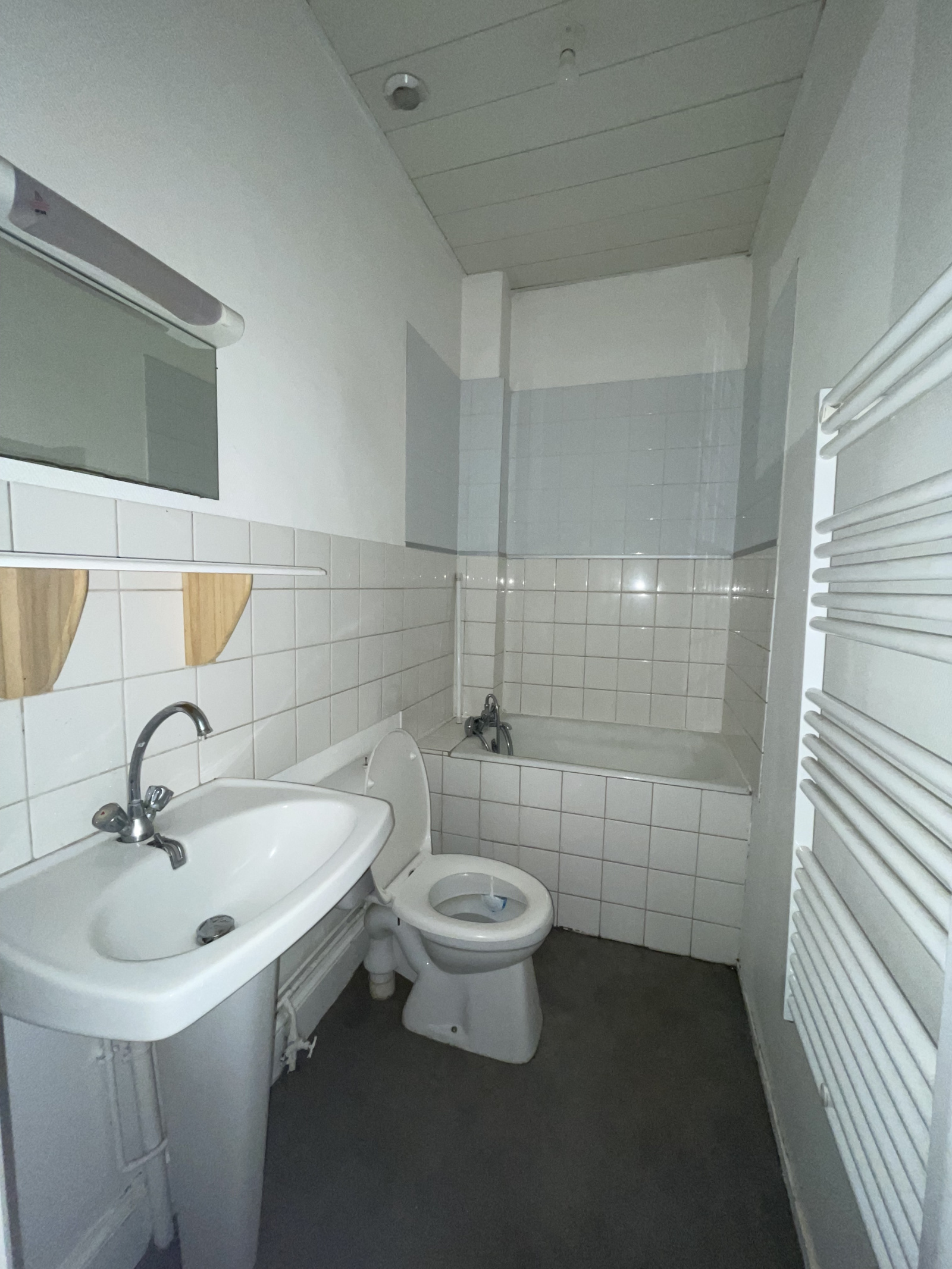 Nancy (54000)Au rez de chaussée d'un petit immeuble ancien, grand appartement 1 pièce de 28m². Il est composé d'une entrée, d'une pièce principale avec parquet chêne et cheminée, d'une grande cuisine, d'une salle de bains. Chauffage individuel électrique. Double vitrage PVC.