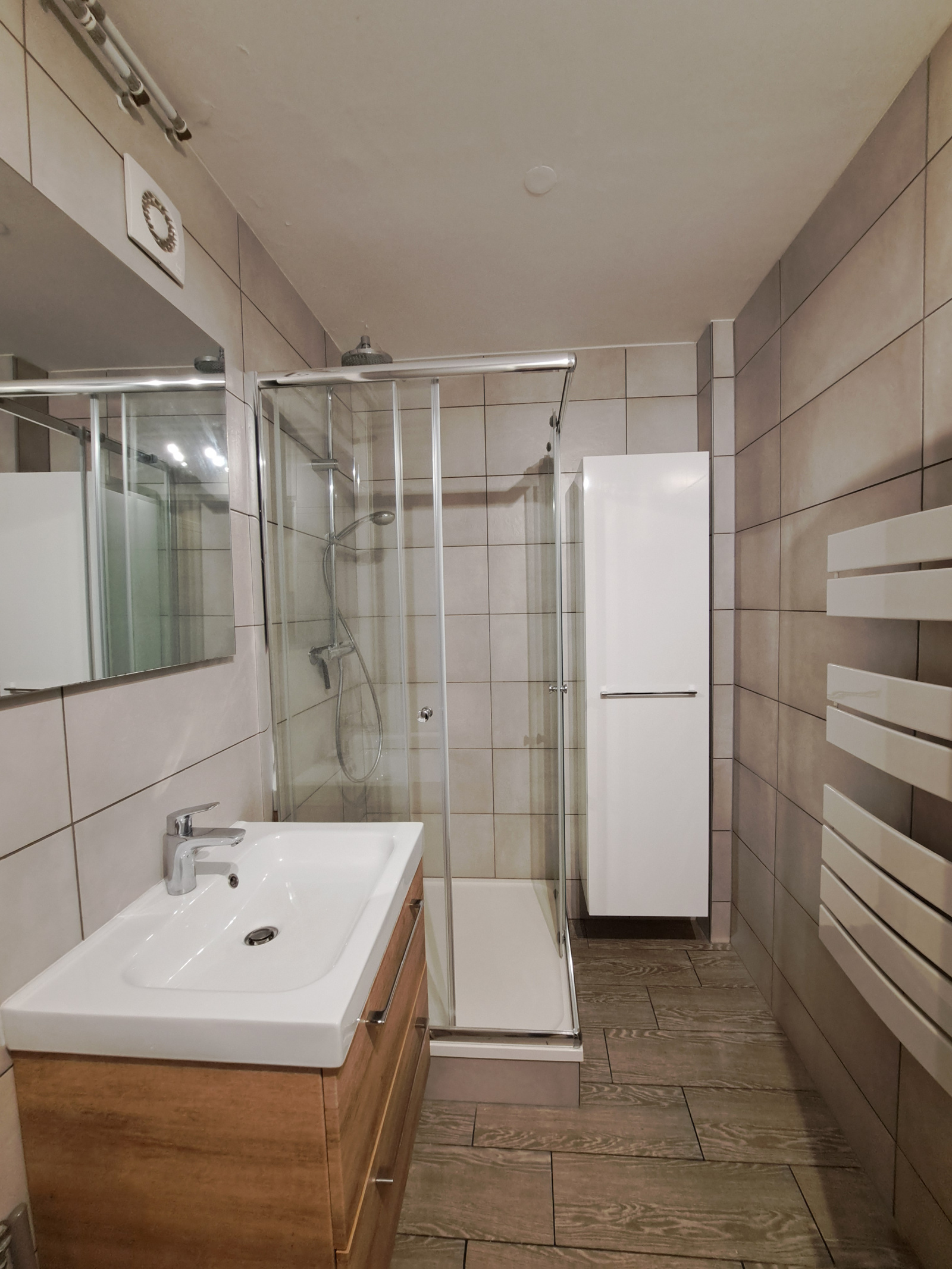 Il comprend une pièce principale lumineuse avec cuisine entièrement équipée (plaques vitrocéramiques, hotte, micro-ondes et lave-linge), ainsi qu’une salle d'eau moderne.