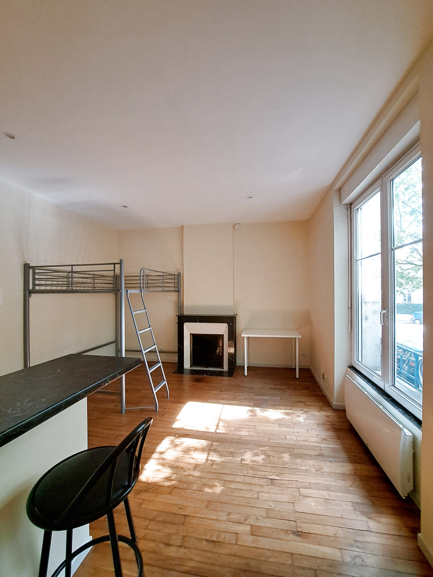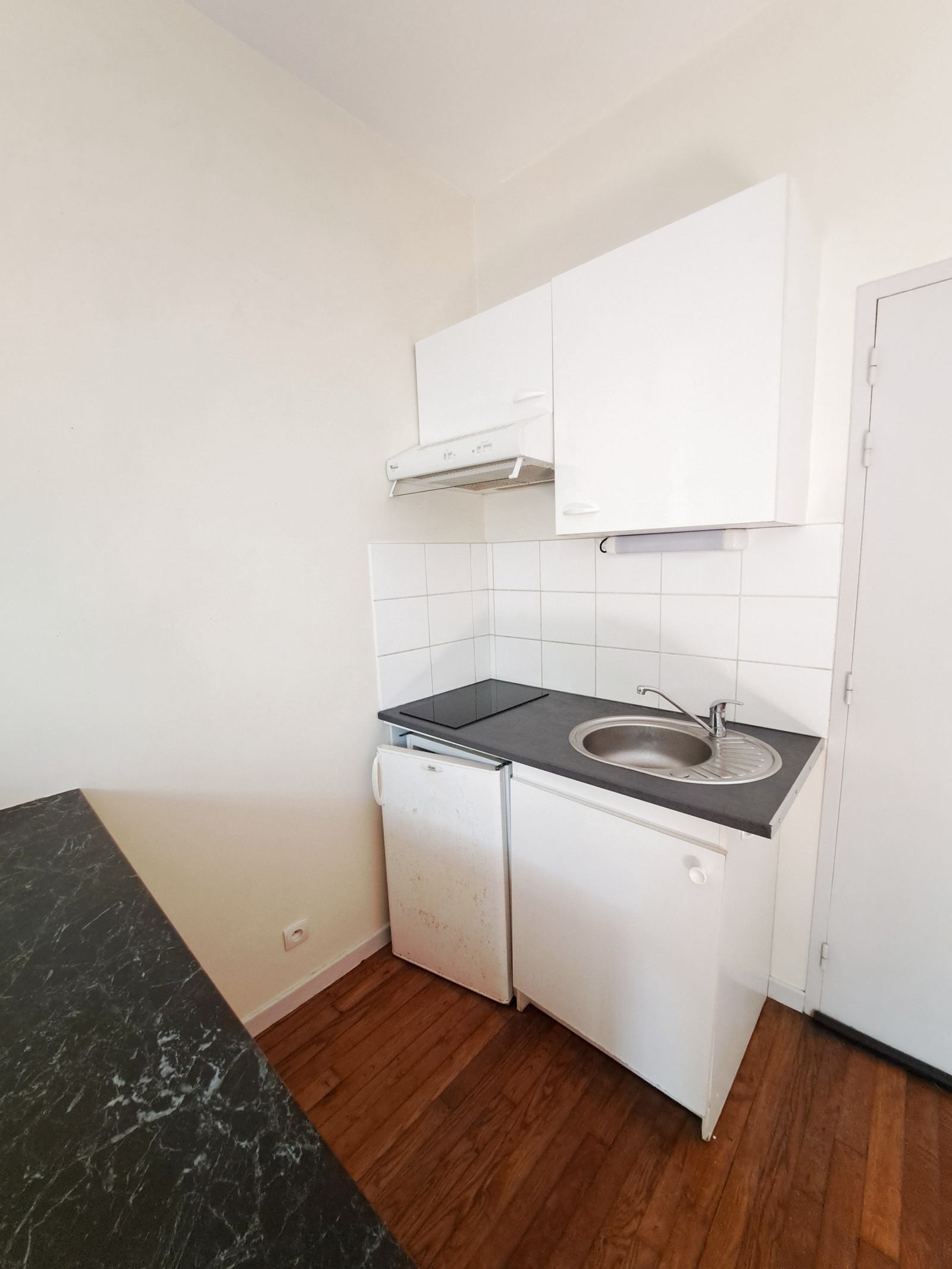 Implanté en rez-de-chaussée d’un petit immeuble calme de 4 logements, il se compose d’un coin cuisine équipée (deux plaques, réfrigérateur, placards et bar) ouvert sur la pièce principale avec le charme du parquet ancien. Une salle d’eau complète ce bien.