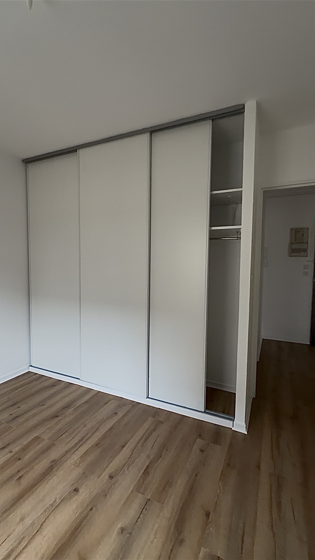 Le logement offre une entrée, une pièce à vivre avec coin cuisine équipée, une chambre et une salle de bains.