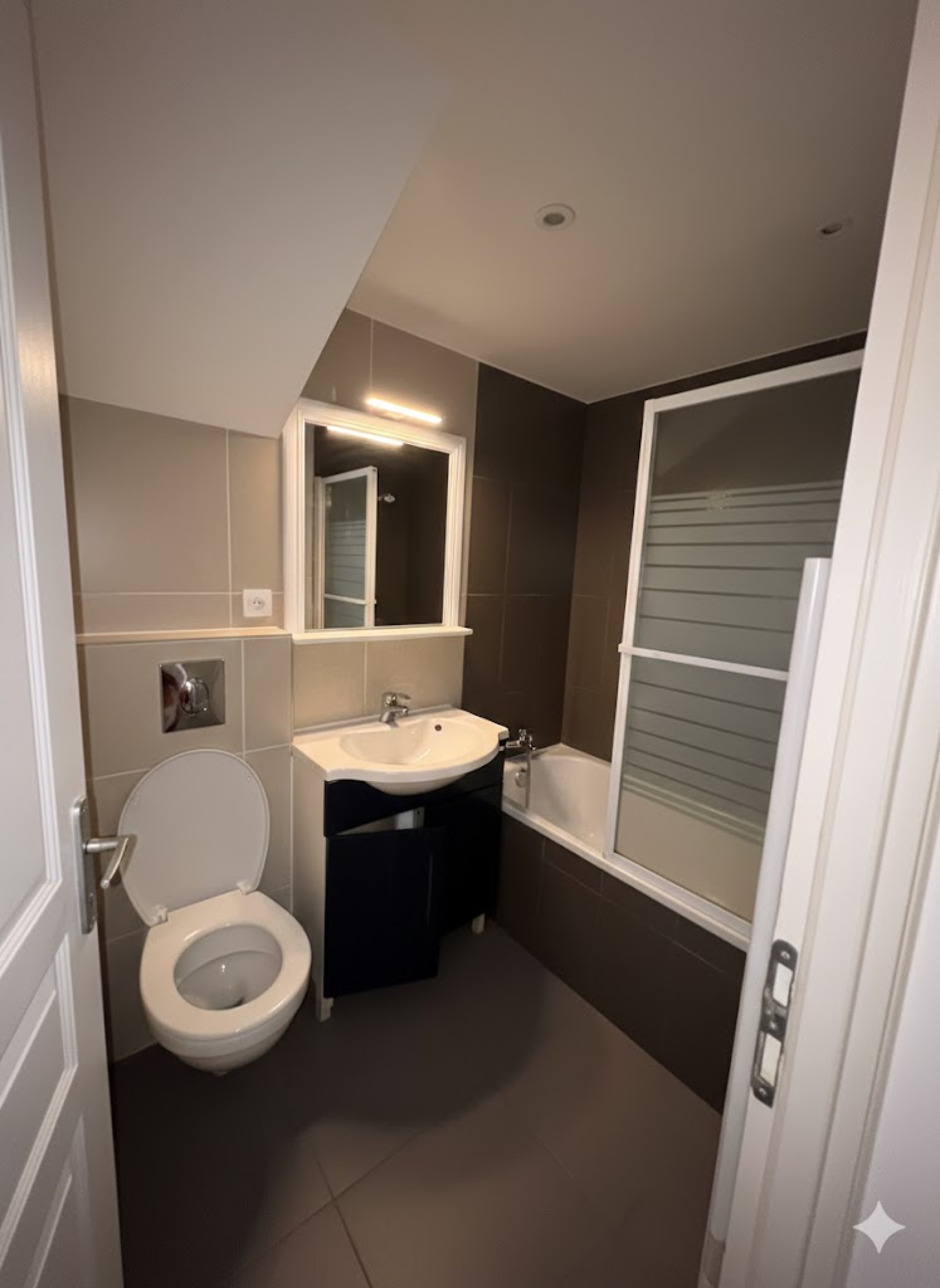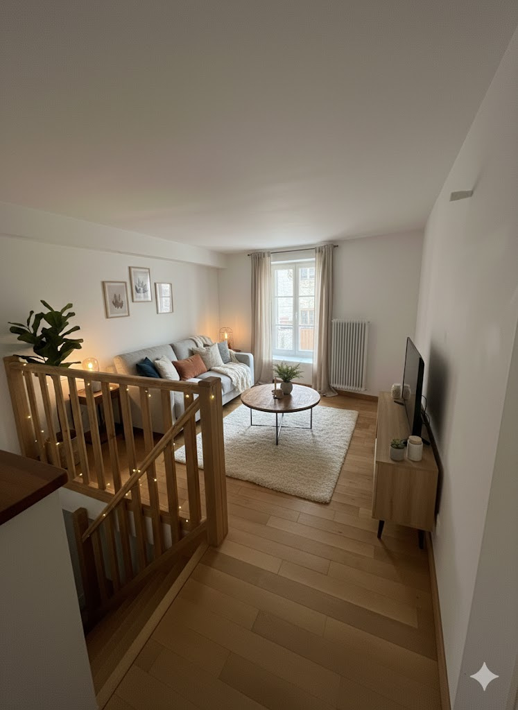 Au 1er étage, vous trouverez un séjour lumineux avec coin cuisine équipée, et en souplex, une chambre ainsi qu’une salle de bains, offrant une configuration originale et fonctionnelle.