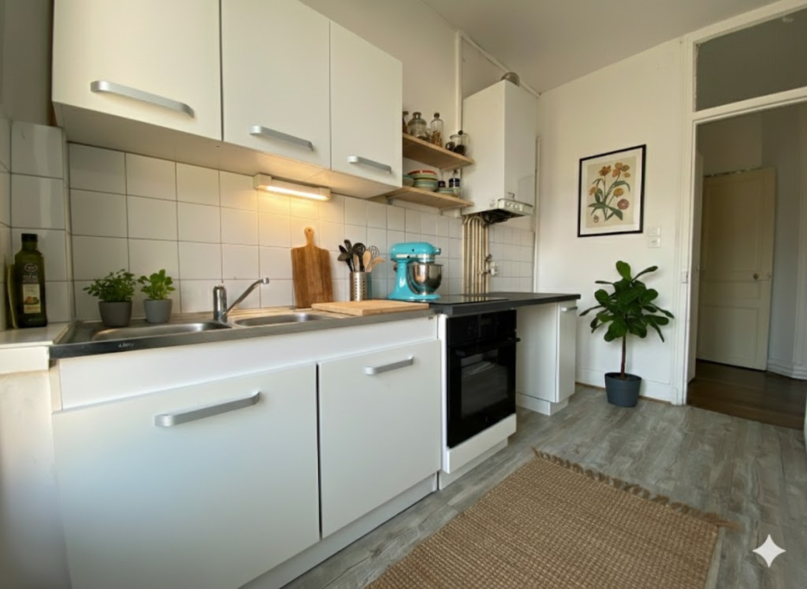 Ce logement de caractère se compose d’une entrée, d’une cuisine neuve équipée (plaque et four), d’un séjour lumineux ouvrant sur un petit balcon, de deux chambres, d’une petite salle d’eau, ainsi que d’un WC indépendant.