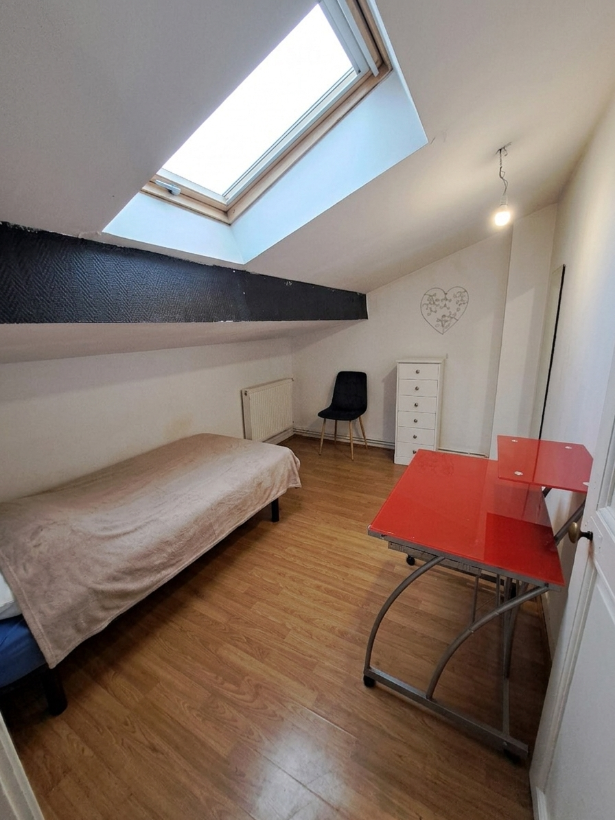 À l'étage supérieur, l'espace nuit se poursuit avec deux belles chambres mansardées, parfaites pour des enfants, un bureau ou une chambre d'amis. Un grenier vient compléter ce niveau, offrant un espace de stockage supplémentaire très appréciable.