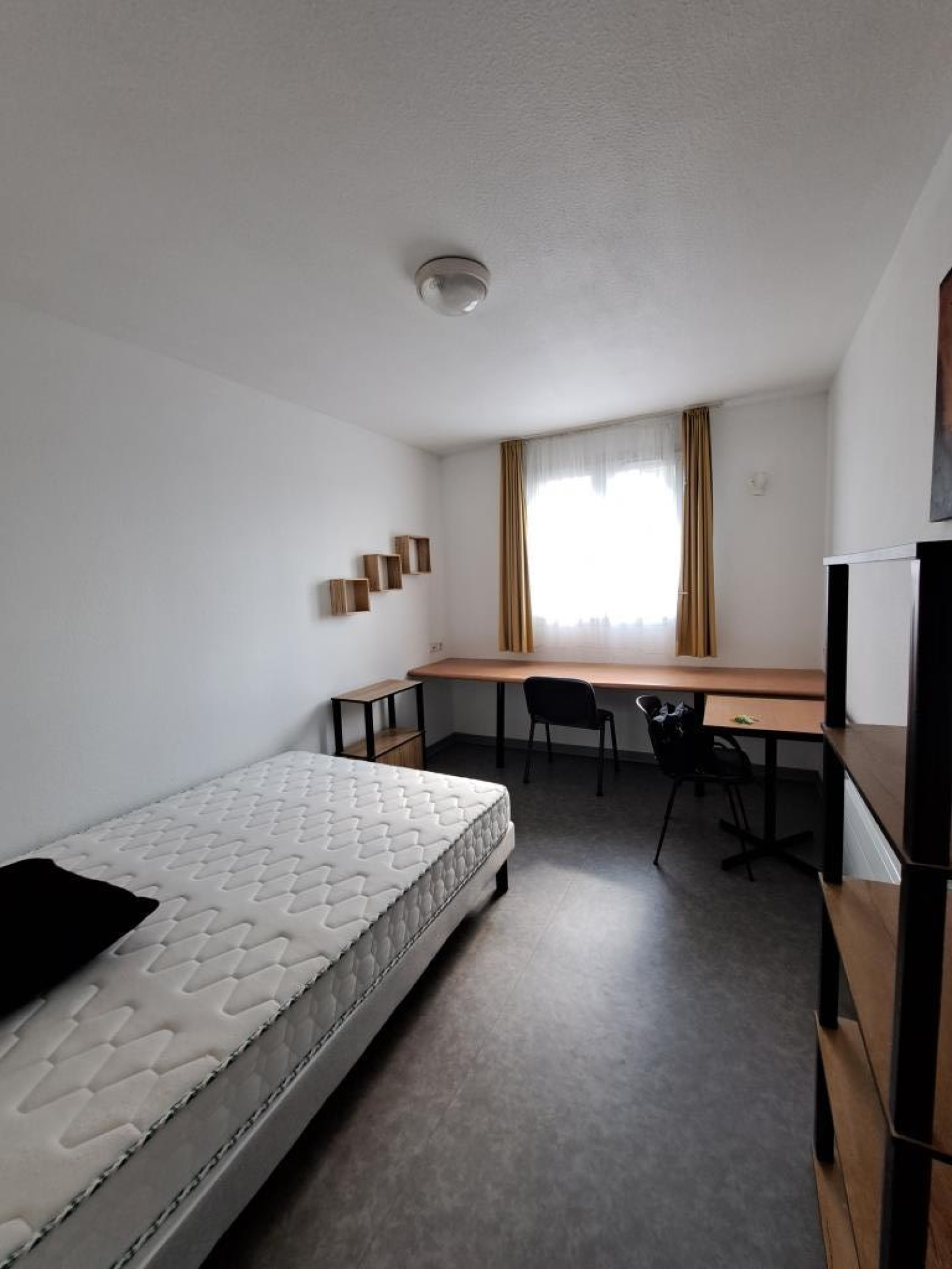 Studio au 4ème étage avec ascenseur dans résidence étudiante.Comprenant une entrée avec placard, une salle d'eau, une kitchenette séparée, une chambre.