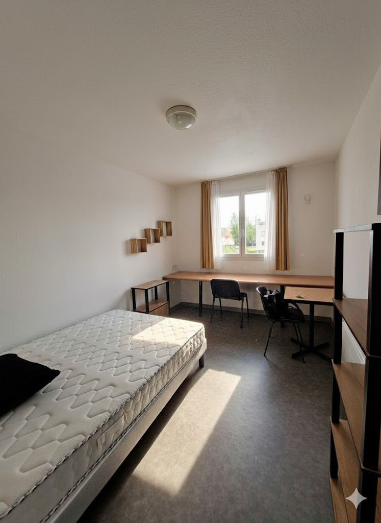 Studio au 4ème étage avec ascenseur dans résidence étudiante.Comprenant une entrée avec placard, une salle d'eau, une cuisine séparée et équipée neuve, une chambre.