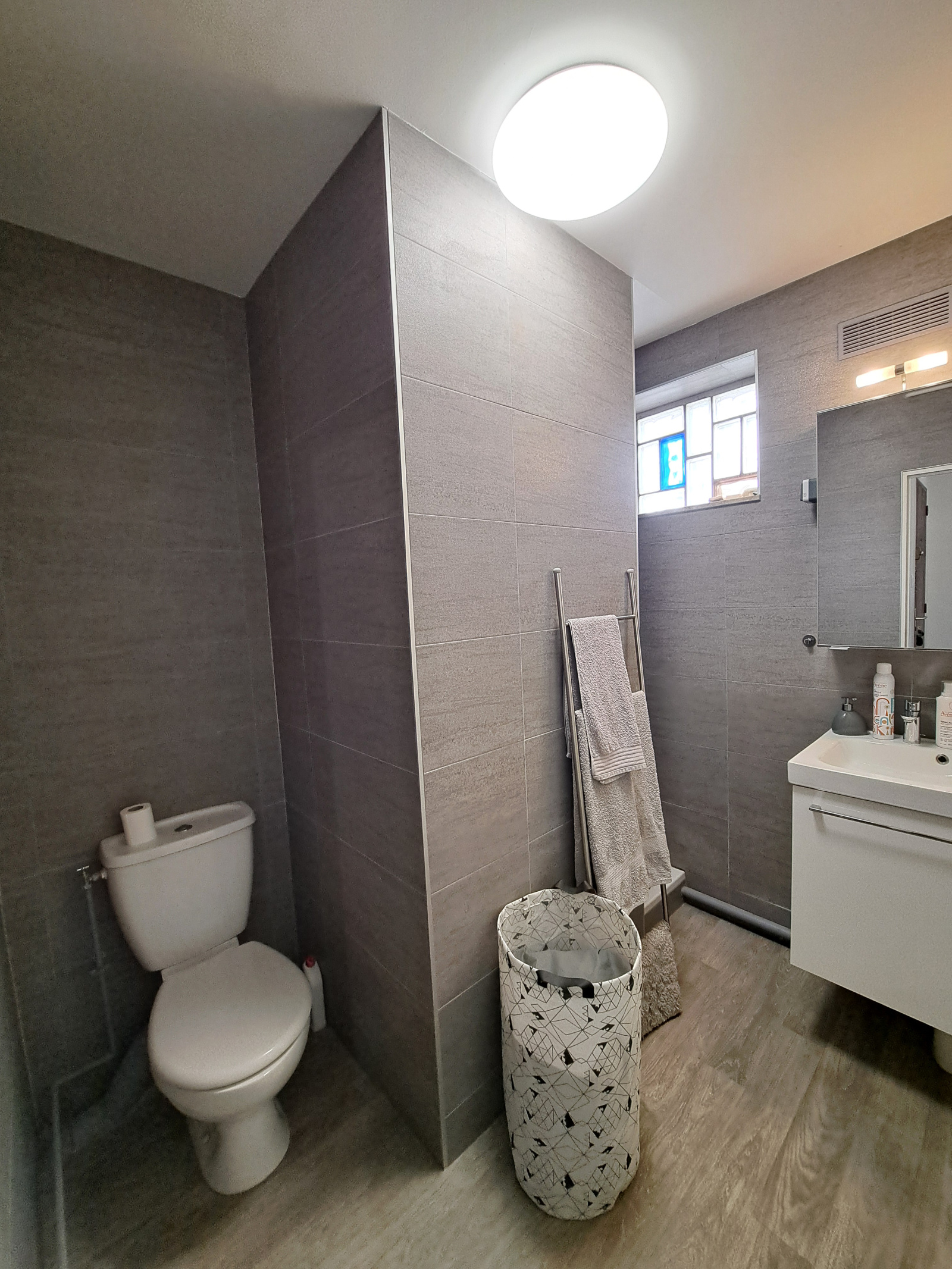 Ce logement se compose d’une entrée avec placard, d’une pièce de vie donnant sur l’arrière de l’immeuble au calme, d’une cuisine équipée et d’une salle d’eau.