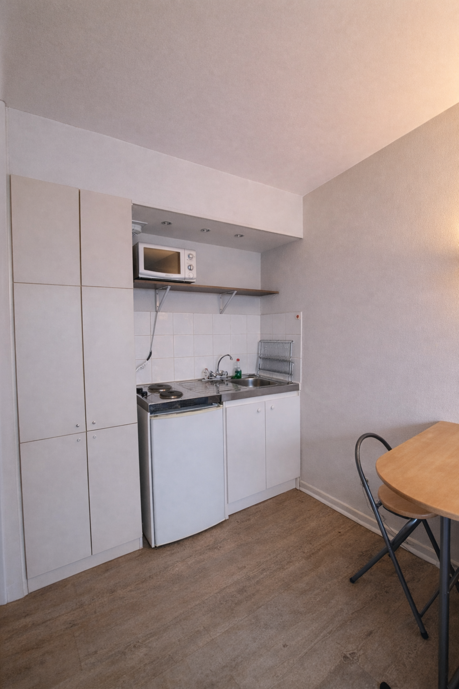 Idéal pour étudiant, ce studio situé en rez-de-chaussée surélevé offre un cadre pratique et fonctionnel.