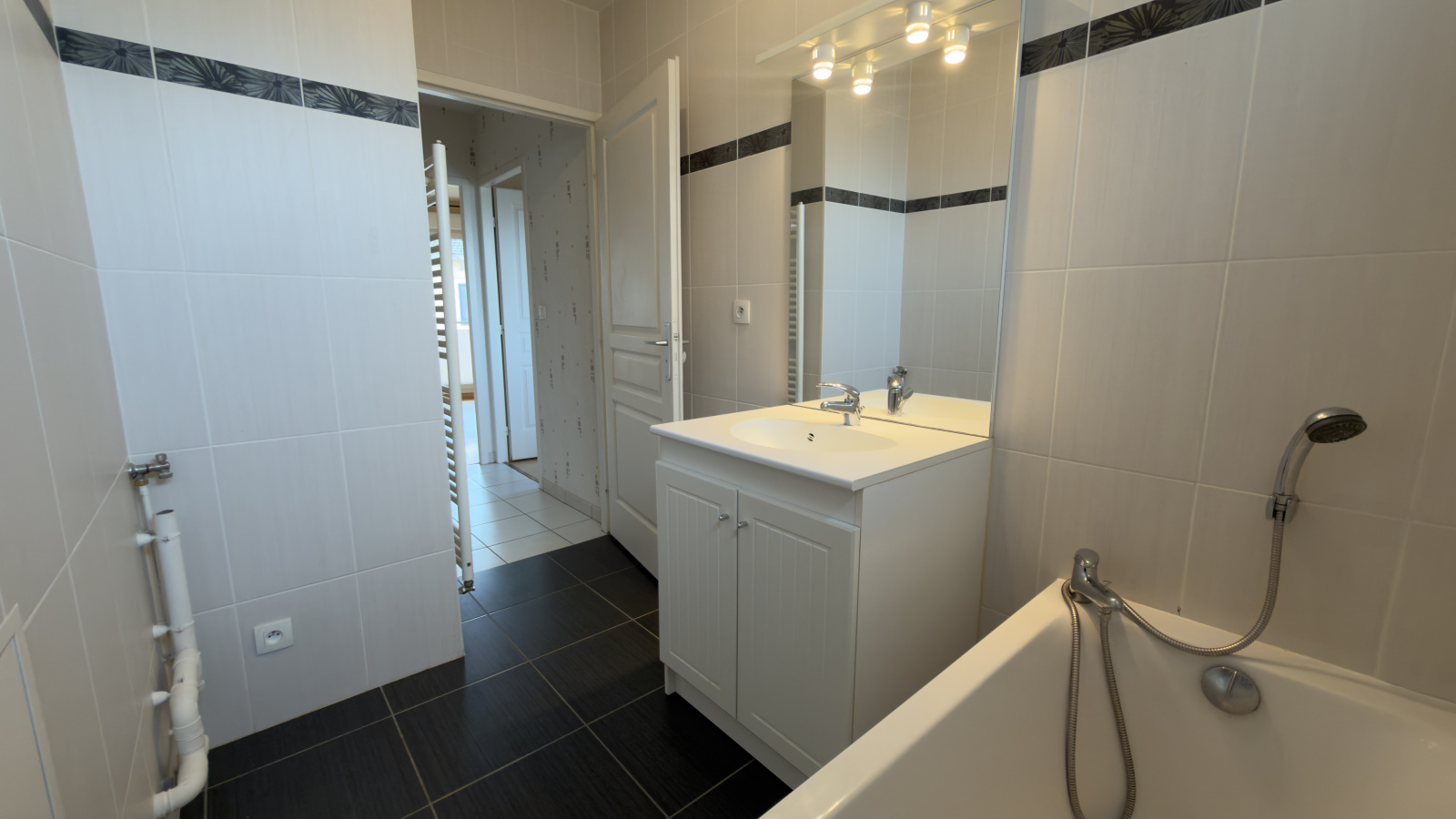 Il se compose d’une entrée avec placard, d’un spacieux séjour lumineux ouvrant sur un balcon, d’une cuisine séparée et équipée (four, plaque gaz et hotte), ainsi que d’un dégagement desservant trois chambres, dont une avec placard, (Possibilité de faire une salle a manger dans une pour deux chambres), une salle de bains et des WC séparés.