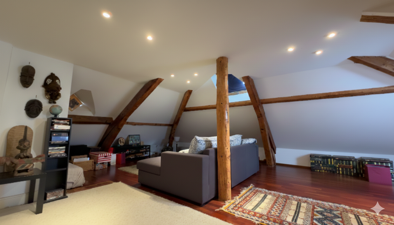 - Une vaste pièce au deuxième étage pouvant être aménagée en salle de cinéma, salle de jeux ou espace de loisirs selon vos envies
